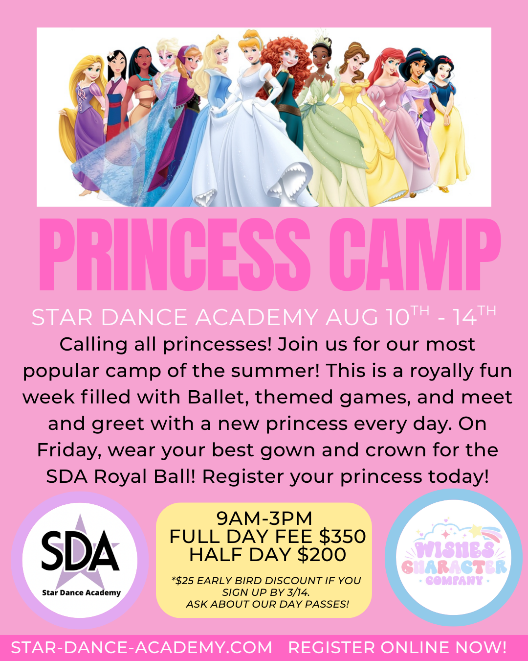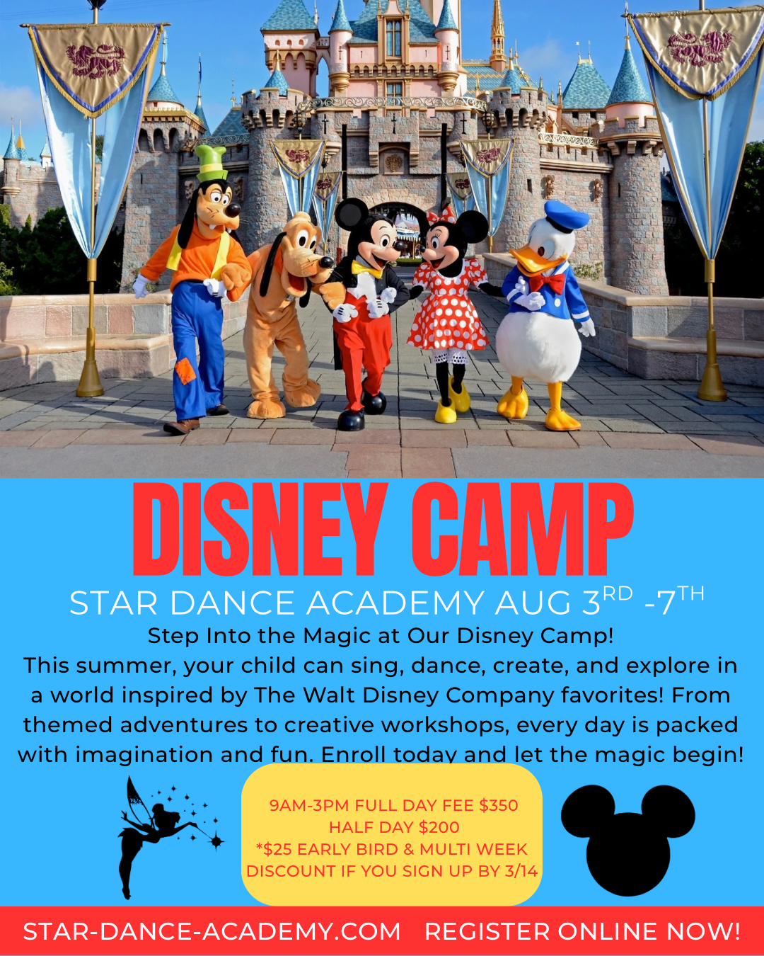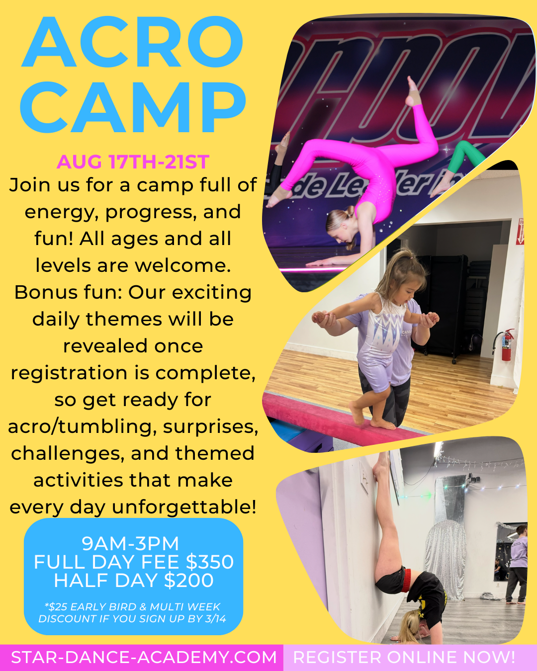 Register on Jackrabbit by 3/14 to save big! $25 early bird discount as well as multi camp discounts. $20 deposit per camp must be paid upon registration. Remaining balance isn’t due until the week prior. Sign-up now to get a FREE summer t-shirt!